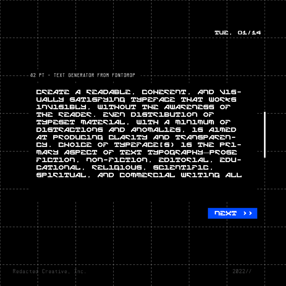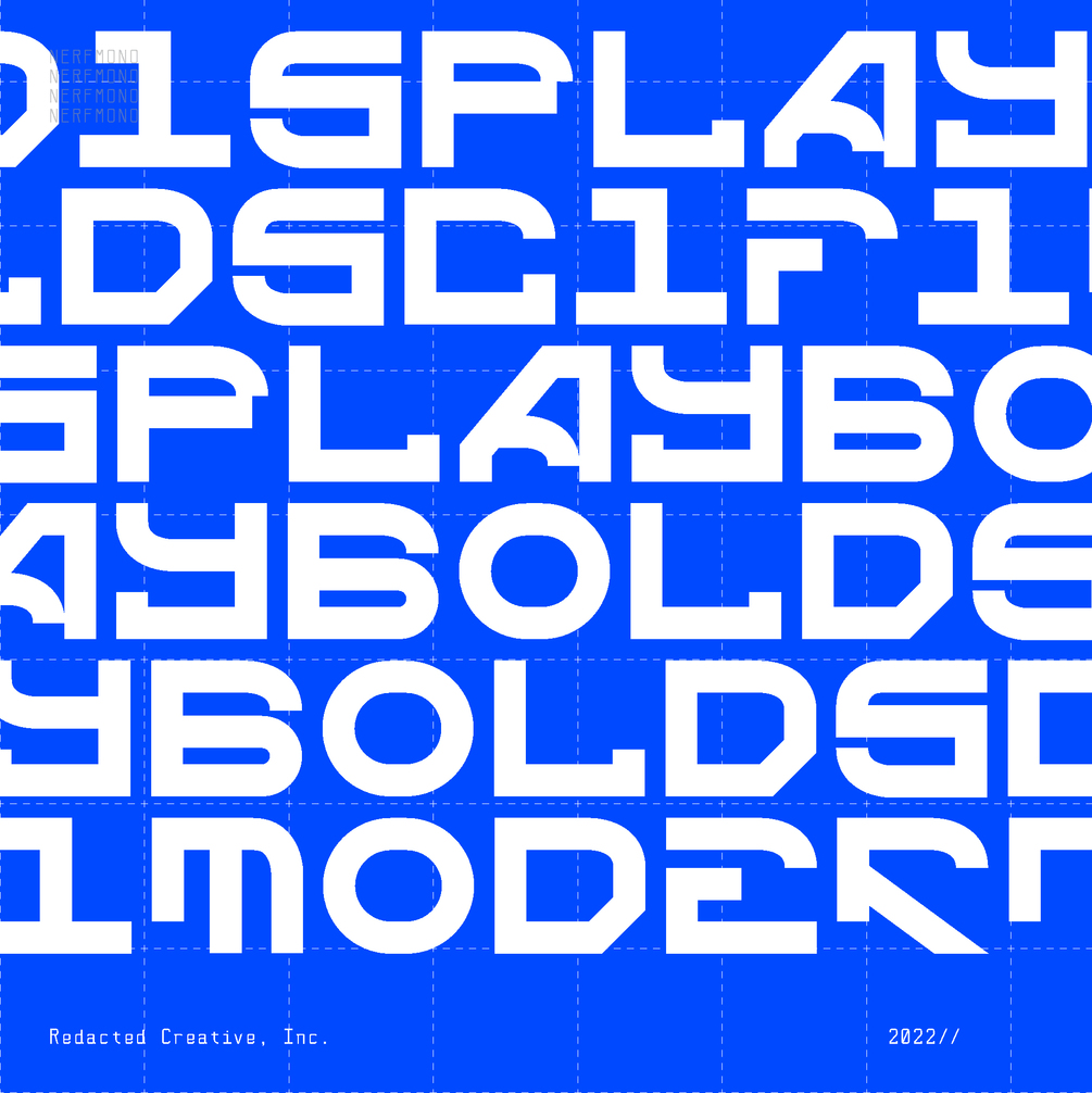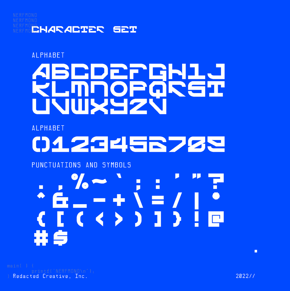Nerf Mono is a sci-fi display font that looks modern, sleek, and unique. Inspired by the dystopian era, Cyberpunk. Nerf Mono is designed to have good readability without sacrificing the visual aspect.
